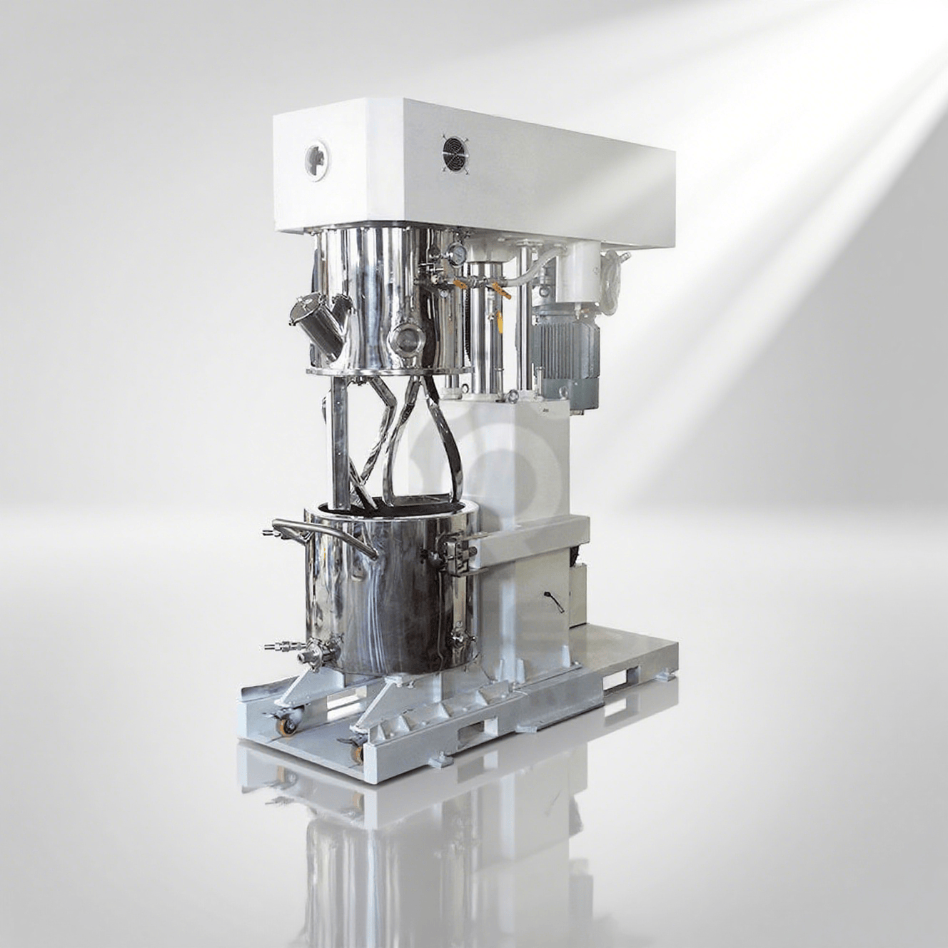雙行星動力攪拌機雙行星動力混合機是一種新型且對多種混合液體、粉體進行攪拌、溶解、分散、均質(zhì)效率好的攪拌設(shè)備。該設(shè)備配有高速、低速、活動刮板部件,低速攪拌部件采用行星齒輪傳動,攪 -